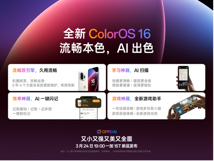 一加 15T 将于 3 月 24 日正式发布,现已开启线上预约,更多预约信息及详细权益,可关注一加官网、一加手机官方微博等官方平台,了解最新动态。